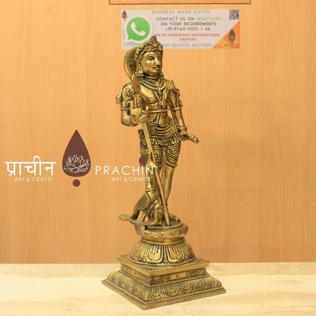 Brass Murugan Statue - Lord Muruganswamy is the most popular Hindu deity among the people of Tamil Nadu. He is the son of Lord Shiva and Parvathi, his brother is Ganesha and his wives are Valli and Deivayanai, he is known by different names like Subramanya, Subramani, Muruga, Shanmuga, Skanda, Karthilkeya, Arumuga and Kumaraswamy.