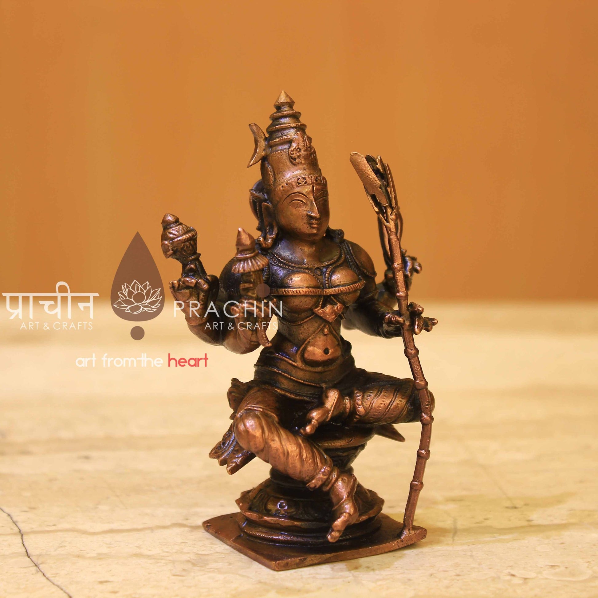 Copper Lalitha Devi Statue is the focussed form of all Gods and Goddess ; the sum total of all energies of the Cosmos. She is care, love, mercy and grace intensified. Rajarajeshwari is known as Avyajakarunamurthy Merciful without any reason.